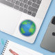 Eine grafische Darstellung der Erde über dem Atlantischen Ozean als blaue und grüne Karte mit den wichtigsten Kontinenten Amerikas, Europas und Afrikas