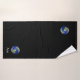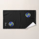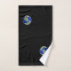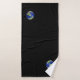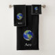 Weltkugel und Text auf schwarzem Badetuch Set. Text kann personalisiert sein. Text nur auf einer Seite!