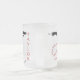 Wrap-around world map with black continents over a transparent ocean, printed on a frosted glass mug. A name can be added for a personal touch. Text and name field are fully customizable or removable.