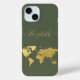 World map gold travelers monogrammed green Case-Mate iPhone hülle