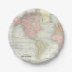 Weltkarte Papier Teller mit alter Weltkarte Hintergrund. Diese Teller können leicht für Ihre Veranstaltung angepasst werden, indem Sie einfach den gewünschten Schriftart hinzufügen.