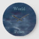 This wall clock features world peace blue clouds designed by deluxephotos.