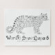 Dieser Schneeleopard wird aus den Worten "Schneeleopard" in 56 Sprachen aus Gebieten, in denen dieses Tier geboren ist, hergestellt.