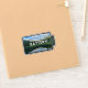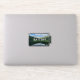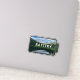 A battery shaped sticker with a beautiful reflected mountain view on a water reservoir in Winter Park, Colorado with the reminder to recharge your own battery.