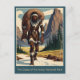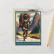 Eine dramatische Postkarte im WPA-Stil, die den Tornit - ein legendäres arktisches Kryptid - zeigt, wie es durch tiefen Schnee im Gates of the Arctic National Park stapft, mit einem ausgewachsenen Walross über der Schulter. Schneebedeckte Tundra, raue nördliche Wildnis und kühne Posterfarben aus den 1930er Jahren schaffen eine kraftvolle retro Reiseplakat-Atmosphäre. Dieses auffallende Design verbindet alaskische Folklore mit klassischer WPA-Ästhetik und ist somit ideal für Fans von Kryptid-Mythologie, US-Nationalparks-Kunst, Tornit-Illustrationen und vintage Wildnis-Themenpostern.