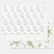 Wrapping featuring a minimalist watercolor wreath with red floral and green foliage accents. This elegant wreath frames the greeting "Merry Christmas". 2nd sheet is a gold pin-stripe pattern. 3rd sheet is watercolor greenery with a sage pin-stripe in the background.