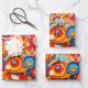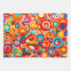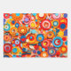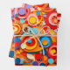 An abstract design composed of colorful circular designs covers this unique wrapping paper.