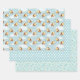 Ein Set von drei Hummeln-Geschenkverpackungsblättern mit Hummeln, Wabenkolben und Blumenmustern.