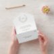 Elegante Folie in einer Hochzeitseinladung mit einem sauberen und zeitlosen Design mit einem Monogramm in einem Kranz-Wappen. Die beiliegende RSVP-Karte bietet eine Auswahl an Speisen für Ihre Gäste.