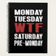 Ein praktischer Planer mit einem Cover, der die traurige Tatsache des Lebens verkörpert, dass nach Montag und Dienstag die Erholung der Arbeitswoche WTF ist, und Samstag ist nur ein Atemzug weg vom Wahnsinn der Vormontags. Ideal für diejenigen, die gewollt haben, organisiert bleibe, ohne das Leben zu ernst nehmen!