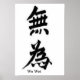 Pôster de parede com uma imagem de holograma japonês com a palavra Wu Wei, que signia estar sereno, sem preocupações, deixar fluir e aceitar.