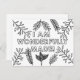 Eine farbenfrohe Postkarte auf der Grundlage des beliebten Psalm 139:14 bin ich fürchterlich und wunderbar gemacht, ideal für die Bekräftigung von Kindern. Dieses Design enthält den Satz "Ich bin wunderbar gemacht", umgeben von verschiedenen Blätter. Diese farbige Postkarte ist ideal für die Sonntagsschule, eine Party-Tasche Gefallen und vieles mehr.