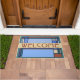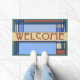 Diese reizende Türmatte, die in der Kunst- u. Handwerksart der Blues und der Terrakotta getan wird, fügt einen authentischen Zeitraumakzent der vorderen Tür Ihres Bungalow-Zuhause hinzu.