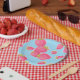 Wunderliches Erdbeermuster auf Blau Pappteller