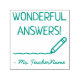 Dieses ermutigende Design der Gummi Briefmarke beinhaltet die ermutigende Botschaft "WONDERFUL ANSWERS!" und einen personalisierten Tutor-Namen. Es verfügt auch über einen dekorativen Bleistift. Es könnte von einem Lehrer, Pädagogen oder Tutor verwendet werden, um zu bestätigen, dass ein Schüler gut abgeschnitten hat.