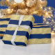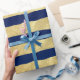 Wunderschöne blaue und goldene Streifen Geschenkpapier