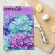 Dieses Küchentuch verfügt über prächtige Hydrangea-Blüten, die zu einem üppigen, blumengeschmückten Muster kombiniert werden. Für alle Damen! Farben in Turkouise, Lavendel, blau. Benutzerdefinierter Text und Farbe!