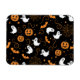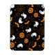 Whimsisches Halloween-Muster gefüllt mit spielerischen Kürbissen, schelhaften Geistern, flatternden Fledermäusen und funkelnden Sternen.