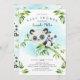 Niedliche geschlechtsneutrale Babydusche mit süßen Pandabären mit Mama gerahmt mit grünen Aquarellbambus-Blätter Set auf weißem Hintergrund. Dreh unsere Einladung zu einem passenden Panda zurück für eine besondere Touch. Besuchen Sie unseren Shop, um diese Einladung für ein Mädchen oder Jungen Babydusche zu sehen.