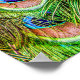 Drucken mit einem nahen Bild der prächtigen, schimmernden Augenopffedern auf einem Pfauenzug, in denen die zauberhaften grünen, blauen und bronzenen Details hervorgehoben werden. Einzigartige Wanddekoration für Vögel und Naturliebhaber. Foto aufgenommen in Arcadia, Kalifornien.