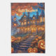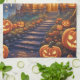 Dieses Küchentuch verfügt über ein sprichwörtliches Herrenhaus im Wald mit lichtdurchfluteten Fenstern, umgeben von vielen Kürbissen. Perfektes Halloween-Geschenk! Eigener Text.