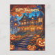 Wunderschöne Villa im Wald, Kürbisse, Halloween Postkarte
