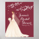 Modernes, schicke Braut-Set auf weinbordeauxrotem Hintergrund mit hübschen weißen Ästen Brautparty Poster. In unserem Shop finden Sie passende Brautduscheinladungen in einer Vielzahl beliebter Hochzeitsfarben!