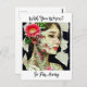 Vermisste dich Postkarte. Kunstsammlung. Schöne Dame mit rosa Blume in ihren Haaren und Zeitungsdruck Typografie ai art.