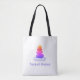 Tasche mit Wunschsteinen in mehrfarbigen Farbtönen über drei konzentrische Kreise und personalisierter Text "Heilige Steine".