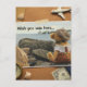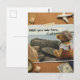 Diese Postkarte fängt einen zarten Moment stiller Wanderung ein – ein kleiner Teddybär sitzt am Wasser und blickt auf entfernte Boote unter einem weichen, wolkigen Himmel. Umgeben von reiseorientierten Erinnerungsstücken, die an ein Korkbrett geheftet sind, trägt die Szene ein sanftes Gefühl der Sehnsucht und Zuneigung. Eine herzliche Art, zu sagen, dass du vermisst wirst, egal wie weit die Reise dich führt.