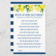 Mit diesem Brautparty-Spiel "Wäre sie lieber?", das so gestaltet ist, dass es mit der Sonne und dem Hauptthema der Marine übereinstimmt, können Sie sich das Lachen anhören. Die Gäste werden versuchen, zu erraten, was die Braut zu sein würde, in alltäglichen und hochzeit-inspiriert Szenarien, vom Schlumpfen des Eis-Kaffees bis hin zur Planung jedes Detail. Dieses Spiel mit kühlem Allcaps-Text, gepflegtem Design und frischer Zitrusfrüchte-Atmosphäre eignet sich hervorragend für Sommerduschen, Brunches oder Party im Garten. Verbinden Sie es mit anderen, sich mit Zitronenspielen, Schildern und Dekorationen abstimmen und genießen Sie die perfekte Stimmung eines Festes.