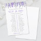 Elegantes Aquarelllavender Floral Brautparty würde sie eher spielen. Fügen Sie Ihrem Brautparty mit dieser spielerischen Aktivität ein wenig Spaß hinzu, bei der die Gäste versuchen zu erraten, welche Option die Braut wählen würde. Es ist eine leichtere Art zu feiern, während jeder verlobt und unterhaltsam behalten wird. Das Design umfasst einen Aquarelllik- und Lavendelgarten mit Stielen in lila und frischen grünen Blätter. Die Blume fließen anmutig nach oben und geben der Spielkarte eine moderne und skurrile Touch. Eine Mischung aus klassischen Serif-Schriftart und eleganter Skripttypografie macht das Spiel stilvoll und dennoch einfach zu lesen. Vollständig anpassbar, können Sie die Fragen, Schriftart-Farben und Hintergrund bearbeiten, um Ihr Brautparty-Thema zu passen. Diese Aktivität verleiht jedem Fest ein charmantes und persönliches Detail.