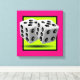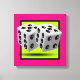 Eine Illustration eines weißen Würfels mit schwarzen Punkten. Hintergrund ist mit einigen groovy psychedelischen Neonfarben in Kalkgrün und Fuschia rosa geschaffen.