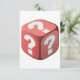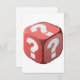 Dieses Design ist ein Würfel mit Fragezeichen. Die Würfel sind rot mit weißen Fragezeichen darauf. Diese Würfel mit Fragezeichen Design sieht toll auf dieser Einladung