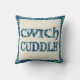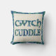 Ein hübsches Throw-Kissen mit den Wörtern "streicheln" und "das cwtch" (Waliser für "Umarmung" oder "Umarmung "), gefüllt mit einem hübschen Blumenmuster der Singrüne auf einem Marine-Blau-Hintergrund.