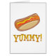 Teilen Sie Ihre Liebe für Hotdogs mit diesem Spaßentwurf mit einem Hotdog und dem Wort, die YUMMY sind.