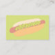 Schaffen Sie handlichen Stunden der Operationskarte für Ihren Würstchenstand oder des anderen Sektors mit diesem, das einfach ist, Visitenkarte besonders anzufertigen. Die Front der Karte kennzeichnet einen vertikalen Plan mit einer Würstchenillustration und Ihrem eigenen kundenspezifischen Text. Die Rückseite der Karte kennzeichnet eine größere Illustration eines Hotdogs gegen einen Limonen grünen Hintergrund.