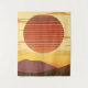 Tapestry in einem Retro-, minimalistischen Wüstenuntergang über Hügeln, in den Schattierungen von tiefrostorange, goldgelb und braun