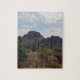 Wüstenlandschaft mit Kaktus und Bergen.