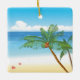 Square Premium-Ornament mit Bild eines idealen Tages auf einer Wüsteninsel. Die Rückseite ist blau mit optionalem Text. Sehen Sie sich die gesamte Sammlung von Shipwreck Ornament in den SPEZIELLEN TOUCHS an. | Abschnitt Gastgeschenke.