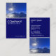 Eine Visitenkartenvorlage mit einem Foto/Bild oben, das durch eine weiße Linie von einem farbigen Bereich getrennt ist. Das Design wird auf der Rückseite wiederholt, aber mit dem Foto/Bild unten. Geeignet für viele verschiedene Arten von Unternehmen. Firmendetails und Website-Details auf der Vorderseite mit Namen und anderen Kontaktdaten auf der Rückseite. Bereit für Ihre persönlichen Daten.