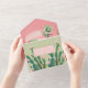 Diese Kakteen Garden Einladung ist der perfekte Weg, Ihre Wüstenhochzeit zu verkünden! Es verfügt über einen Kakteen mit stachelbrauner Birne und rosa Blüten. Alle wichtigen Hochzeitsdetails können personalisiert sein. Die Farben sind grün, rosa, weiß und schwarz.