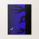 Ein schönes Puzzle mit einer Wüstennachtszene. Eine coyote Silhouette heult auf einem Halbmond gegen einen Sternenhimmel.