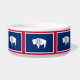 Dieses Design verfügt über die Staatsflagge von Wyoming, einem doppelt Binnenland-Staat im Western United Staaten. Es ist der zweitbevölkerungsreichste Staat des Landes. Wyoming grenzt im Norden an Montana, im Osten an South Dakota und Nebraska, im Süden an Colorado, im Südwesten an Utah und im Westen an Idaho und Montana. Der offizielle Spitzname von Wyoming ist "Equality Staat", aber manchmal auch bekannt als "Cowboy Staat" oder "Big Wyoming". Wyomings Western wird größtenteils von den Gebirgszügen bedeckt, während die östliche Hälfte des Staat die Hochebene ist. Der Yellowstone Nationalpark liegt teilweise im Wyoming und der Grand Teton Nationalpark liegt ganz im Staat. Cheyenne ist die Hauptstadt des Staat und die bevölkerungsreichste Stadt Wyomings. Die Flagge des Staat von Wyoming beinhaltet eine Silhouette eines amerikanischen Bison. Das Rote symbolisiert die Indianer und das Blut der Pioniere, die ihr Leben gegeben haben. Das Weiße ist ein Symbol für Reinheit und Aufrichtigkeit. Das Blau ist die Farbe des Himmels und der fernen Berge.