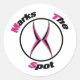 X markiert den Punkt Runder Aufkleber