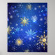 XMAS Blue Background mit goldenen Schneeflocken Poster