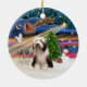 Eine Bartkollie ist der Mittelpunkt dieser Entwürfe, die einige der wichtigsten Symbole der Weihnachtszeit, einschließlich der drei weise Männer, die vom Stern von Bethlehem geführt werden, ein Schneemann, ein Weihnachtsbaum, eine Taube des Friedens und Santa und seine Rentiere, die durch den Sternenhimmel geflogen.