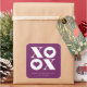 Ideal für Goody-Taschen und Geschenkverpackungen. Dieser moderne quadratische Valentinstag Aufkleber hat abgerundete Ecken, große weiße Xoxo-Typ mit weißen Herzen in der Mitte der o's auf einem plum, Auberginen Hintergrund.