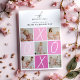 Ein wenig spät, eine Menge Liebe Valentines Card. Das Design verfügt über 5 Fotografien Ihrer Wahl, inmitten eines Rasters aus farbigen Blöcken mit Schlägern und Küssen.