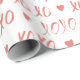 Ein reizvolles Muster mit dem Text "XOXO" und Herzformen in Korallenfarbe vor weißem Hintergrund. Der "XOXO" ist in einem Pinselstrich-Stil geschrieben, was ihm ein handgezeichnet Aussehen verleiht, und die Herzen fügen eine Touch von Zuneigung und Liebe hinzu. Das Muster wechselt zwischen "XOXO" und Herzformen in einer rasterähnlichen Anordnung.